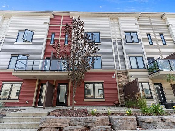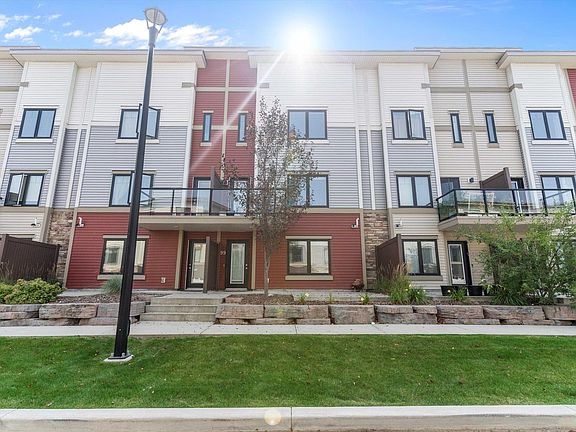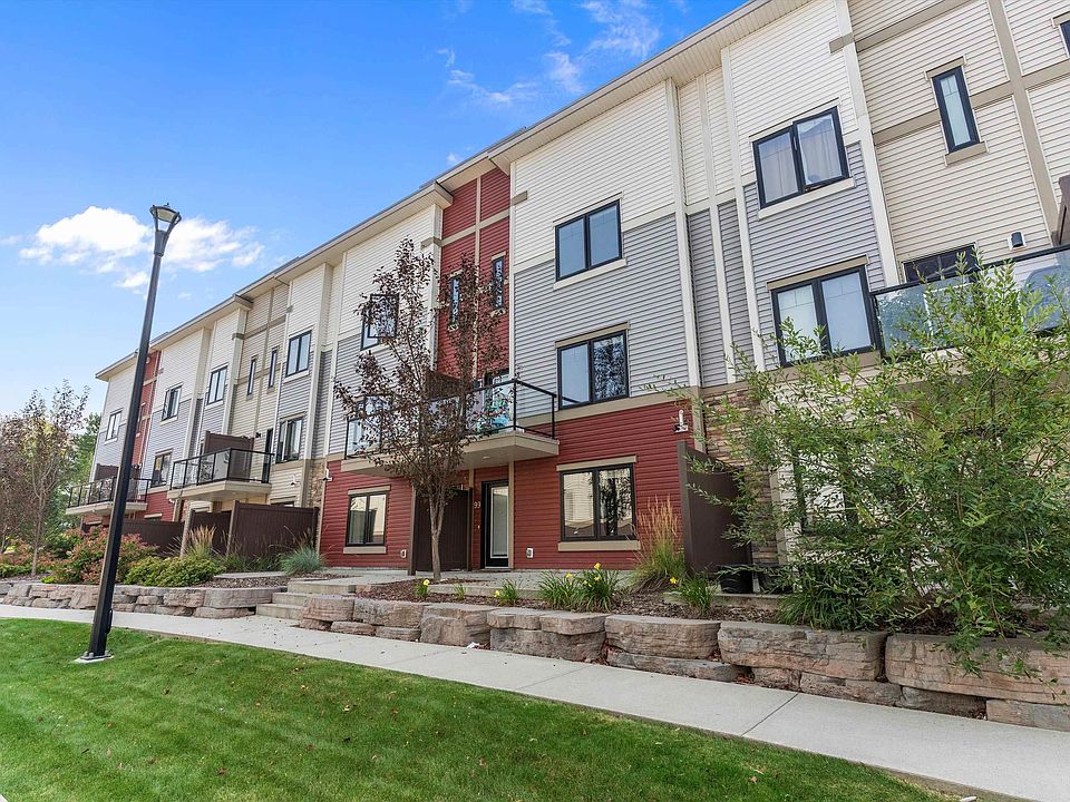 Discover one of the city’s largest townhomes with one of the lowest condo fees! This 3-storey Landmark-built gem in the sought-after Village at Walker Lakes is just steps from ponds and trails, offering nearly 1,900 sq ft of stylish, functional living. The ground floor flex room is ideal as an office, gym, or media space, with access to the front patio and double attached garage. The main floor boasts 9’ ceilings, a bright living room with private balcony, and a chef-inspired kitchen with granite countertops, island, stainless steel appliances, walk-in pantry, dining area, laundry, and a half bath. Upstairs, enjoy a spacious primary suite with walk-in closet and ensuite, plus two generous bedrooms and full bath. Energy-efficient features include triple-pane windows, tankless hot water, and an HRV system. With schools, shopping, dining, parks, the airport, and Anthony Henday minutes away, this low-maintenance home blends modern comfort with unbeatable convenience.