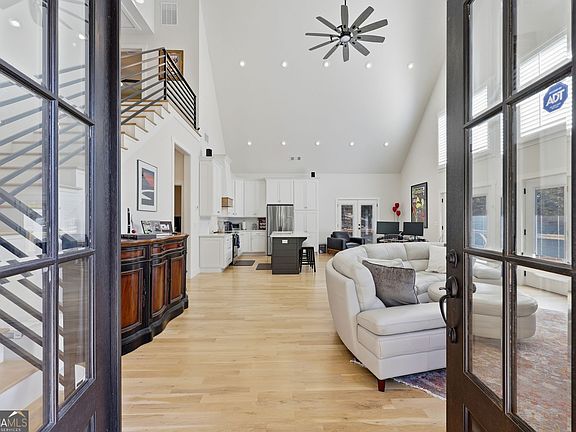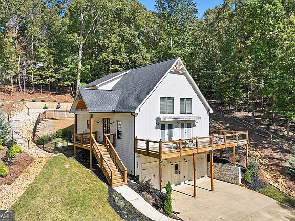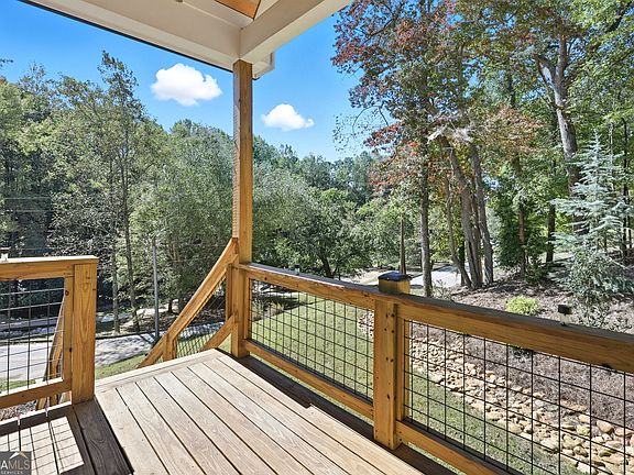 804 Wilshire Rd built in 2022 is now BETTER THAN NEW! Over $100,000 in Hardscape/Landscape Improvements since last purchase! Prime Location - Private Park Setting - Wilshire Park / Wilshire Trail exercise path (directly across the street) leads your walk or jog straight to Downtown Gainesville Square as well as Lake Lanier Park. Mature forest of trees, daily deer visits are captured on multiple Outdoor security cameras, front wraparound coffee sipping deck with Polk Speakers, easy climb slate step railed staircase and 2 different levels of private Flagstone patio landings - firepit included. 804 Wilshire Rd features include: Super Low Utilities cost (ask for utility bills) / an Oversized 780 sq ft epoxy floor 2-3 car garage that easily fits 2 cars, a golf cart, and a multitude of fitness equipment. Included among the below grade Concrete Poured walls is a bonus room with AC split unit (great spot for an office, Therapy room, Cardio Theater, or Man-Woman cave). There is also a Safe Room for storage or whatever you decide this room should be. Home has been well maintained - New TRANE AC condenser, new gutters, new security and wildlife cameras, new outdoor lighting and spotlights. Extensive Hardscaping was added 2024 - offers Triple layer drainage protection from 2 horseshoe dry creeks, and an underground French drain system, along with many mature conifers and ground cover. Not to be overlooked is the straight shot easy in and out concrete driveway, outdoor wrap around deck with electric awning for summer shade, fenced in back yard, wood floors, volume ceiling, 42 inch kitchen cabinets, plantation shutters, master closet shelf build out, and an electric fireplace. Big Screen TV's, and all Appliances including new Washer and Dryer convey. Furnishings are negotiable for someone wanting a Turn-Key nothing to do home.