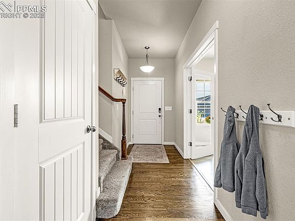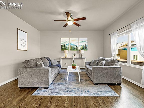 Welcome Home to the family-friendly community of Shiloh Mesa—one of Northeast Colorado Springs’ most desirable neighborhoods. Featuring award-winning D-49 schools (with school choice options), this community features fully stucco exteriors for low-maintenance durability and energy efficiency. Speaking of efficiency—the PAID OFF solar panels, a huge bonus for future owners. You’ll also enjoy the 6-foot privacy fencing throughout the home, and the no-maintenance astroturf backyard. Inside, this 6-bedroom, 4-bath home blends space, style, and functionality. The main level showcases an open-concept layout centered around a gourmet kitchen package—granite countertops, stainless steel appliances, double ovens, a large walk-in pantry, and 42” cabinets. The Kitchen is open to the spacious Dining Room, and the Living Room. The Main Level also offers a dedicated office space with double French doors and additional cabinetry. Upstairs, the spacious primary suite is one of four large bedrooms, and features a HUGE walk-in closet, dual vanities, soaking tub, and separate shower. A loft and upper-level laundry add convenience, and every bedroom is wired with CAT 5 Ethernet for reliable high-speed internet. The fully finished basement offers endless possibilities—and has been uniquely finished to offer 2 additional bedrooms. The low-maintenance backyard is designed for fun with a concrete patio, turf, sandbox, and optional trampoline. Smart upgrades are here too- including a Nest thermostat, Vivint security system with multiple cameras- and the home also offers a Reme Halo in-duct UV air purifier along with those paid for Solar Panels. This home is situated just steps from Aspen Meadows Park (with a dog park and playground) and is located just minutes to all of the shopping, dining, and entertainment that the Powers Corridor offers in abundance. Welcome Home!