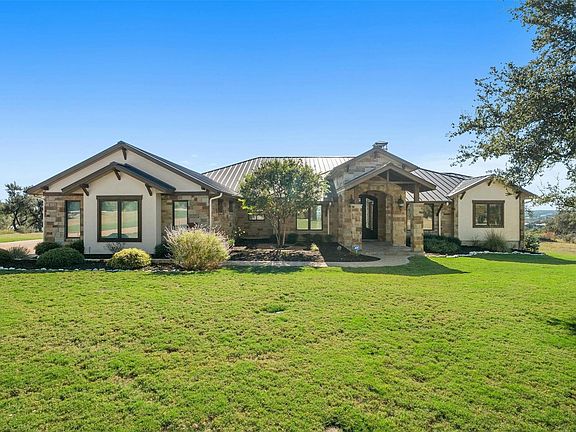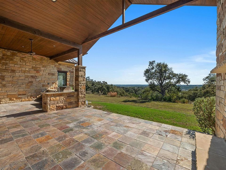 Located in the prestigious gated community of Belvedere in the Texas Hill Country, this sprawling one-story home offers 4 bedrooms, 4.5 bathrooms, and an array of luxurious features. The house is situated on one of the most desirable lots in Belvedere, a quiet cul-de-sac with unobstructed views.  The welcoming foyer opens to a separate study with rich hardwood floors and a beamed ceiling, ideal for a home office. A formal dining room with elegant coffered ceilings provides the perfect space for entertaining, while the great room boasts vaulted, beamed ceilings, hardwood floors, and a stunning stone fireplace. This inviting space flows seamlessly into a gourmet chef’s kitchen, complete with a center island with breakfast bar, top-of-the-line stainless steel appliances, and an oversized side-by-side refrigerator and freezer. Adjacent to the kitchen, a sunlit breakfast room offers a cozy setting for informal meals. The primary bedroom suite is a private retreat with beamed ceilings, hardwood floors, and a spacious walk-in closet. Its luxurious bath includes a soaking tub, dual vanities, and an expansive walk-in shower with double rain showerheads. Three additional bedrooms each feature en suite baths, and a versatile game room could serve as a fifth bedroom. Outside, a covered patio with an outdoor kitchen, grill, refrigerator, and wood-burning fireplace overlooks the scenic 1.468-acre lot with Texas Hill Country views. Belvedere offers residents a host of community amenities, including a clubhouse, lazy river pool, playground, basketball court, fishing pond, and scenic walking paths. Conveniently located near Lake Travis, the Hill Country Galleria, and within the esteemed Lake Travis Independent School District, this home combines elegance, comfort, and access to an exclusive lifestyle.