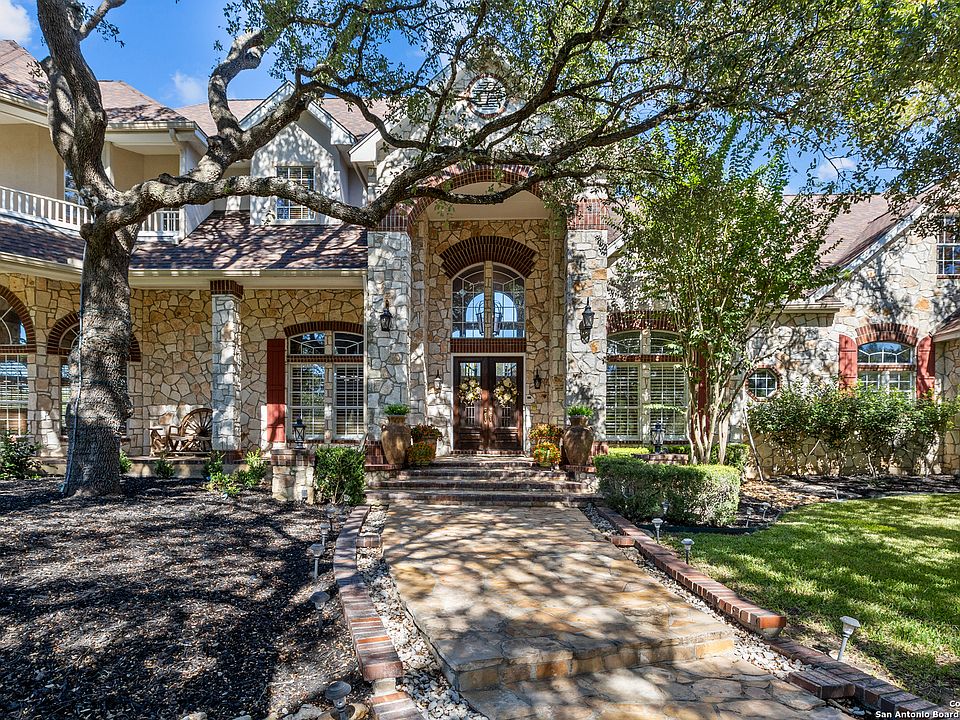 Hill Country Luxury on 6.6 Acres in Fair Oaks Ranch Discover a rare Hill Country sanctuary blending timeless elegance with natural beauty. Privately gated and nestled on 6.6 acres, this stunning estate in the heart of Fair Oaks Ranch offers refined living surrounded by mature oaks and serene views. Inside, a grand two-story foyer welcomes you with soaring ceilings, a graceful staircase, and abundant light. The formal dining room opens to a chef-inspired kitchen featuring a dramatic stone wall, large island with hanging pot rack, custom cabinetry, and built-in appliances. The kitchen flows effortlessly into the casual sitting area and breakfast room, creating a perfect space for entertaining and everyday living. Enjoy true indoor-outdoor living with a wrap-around patio and expansive deck complete with fire pit, hot tub, and generous seating-ideal for gatherings or quiet mornings surrounded by nature. The main living room offers Hill Country charm with a floor-to-ceiling fireplace, custom built-ins, and walls of windows overlooking the acreage. The primary suite is a private retreat with a sitting area, double-sided fireplace, and spa-style bath with soaking tub and dual vanities. A private staircase leads to an exclusive fitness room, sauna, and balcony-a peaceful hideaway for relaxation. The main level also includes a guest suite with en-suite bath. Upstairs, a secondary living area with fireplace, wet bar, and wine fridge sets the stage for entertaining. Two additional bedrooms each feature private baths and access to a wrap-around balcony. A flex room provides space for a game room, studio, or library. An additional detached dwelling offers versatility-ideal for a home office, guest space, or studio with half bath. With room to create a resort-style pool, cabana, or equestrian setup, this estate captures the essence of luxury Hill Country living. Residents of Fair Oaks Ranch enjoy access to the golf and country club, nature trails, and close proximity to Boerne and San Antonio's shopping and dining. This is more than a home-it's a statement of space, serenity, and sophisticated Texas living.