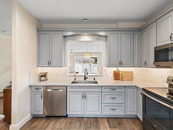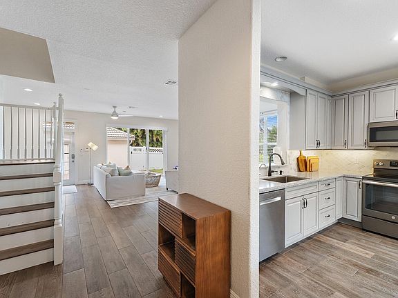 3 bedroom, 2.5 bathroom CBS townhome in the gated Montecito checks all the boxes for move-in ready living in Palm Beach Gardens.Downstairs, enjoy a modern kitchen with abundant storage, 2019 cabinetry, and 2023 refrigerator and dishwasher. Upstairs, fresh 2023 flooring leads to a standout primary suite with a soaking tub, frameless glass shower, and elevated finishes. Accordion shutters and well-maintained systems add everyday peace of mind.The HOA includes cable, pool access, gated entry, and landscaping, all just minutes from Northlake Blvd, I-95, top schools, and local shopping.