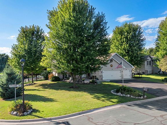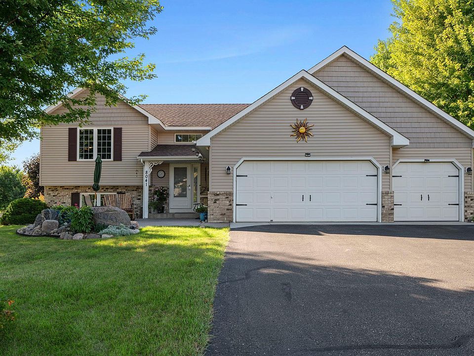 Welcome to this beautifully maintained home, set on a spacious corner lot with a fully fenced backyard and gorgeous landscaping. The upper level offers an open-concept design with vaulted ceilings, enhancing the light and airy feel throughout. The kitchen, dining, and living areas flow seamlessly together and feature Brazilian hardwood floors, abundant cabinetry, a large pantry, stainless steel appliances, and granite countertops. Both bathrooms have been tastefully updated, and the lower level boasts brand-new carpet. The walkout lower level provides two additional bedrooms and a generous family room warmed by a gas fireplace. Step outside to a spacious patio, perfect for relaxing or entertaining. Practical upgrades include a heated, insulated three-car garage, new HVAC system (2019), maintenance-free deck railings, and a backyard shed for extra storage. Located in Rockford, this home offers the best of both worlds—small-town charm with convenient access to nearby city amenities in Plymouth, Maple Grove, Buffalo and St. Michael, all while being tucked away from the busyness of the big city.