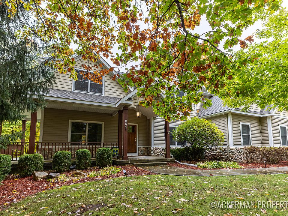 Experience the rare combination of luxury and privacy in this stunning 4-bedroom home nestled within Austinridge Estates. Inside, a chef-inspired kitchen boasts premium appliances — Wolf oven and hood, Miele espresso machine, warming drawer, and wine fridge — all set within an open, light-filled design ideal for gatherings. The spacious primary suite is a true retreat with an elegant ensuite bath and two custom walk-in closets. The walkout lower level features a sophisticated movie room with Bose Speakers and Epson projector, perfect for entertaining. Enjoy evenings by the outdoor firepit or curl up beside the indoor gas fireplace. With a New Roof, Furnace, and AC in 2023, every detail reflects care and quality. Here, you'll feel worlds away on your private estate — yet you're still part of a welcoming neighborhood within the Nationally recognized Caledonia school district.