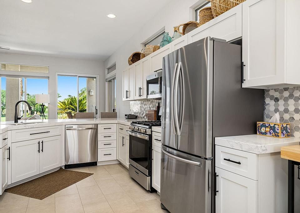 Perfectly positioned on the 3rd green of Heritage Palms golf course, this beautifully renovated home offers an intimate golf experience right from your patio as well as sweeping fairway and mountain views, in a coveted 55+ resort community. This beautifully updated home offers 2 bedrooms/2 baths, and an open concept layout making it a light and bright living experience.The stunning kitchen is a true highlight, featuring sleek quartz countertops, crisp white cabinetry, stainless steel appliances, and a custom tile backsplash. A spacious utility room provides additional storage and even space for a small office nook. Smart Home features allow you to manage your home from anywhere, making it an ideal seasonal retreat or low-maintenance year-round residence.As an added bonus, a golf cart is included, so you can easily access the community's outstanding amenities.Living in Heritage Palms means enjoying a 55+ active adult community with 24 hour security and exceptional amenities: an 18-hole championship golf course, clubhouse with restaurant and lounge, fitness center, indoor and outdoor pools, pickleball and tennis courts, billiards, library, and a vibrant calendar of social events and clubs.Whether for the season or year-round, this home offers the perfect blend of style, comfort, and resort-style living.