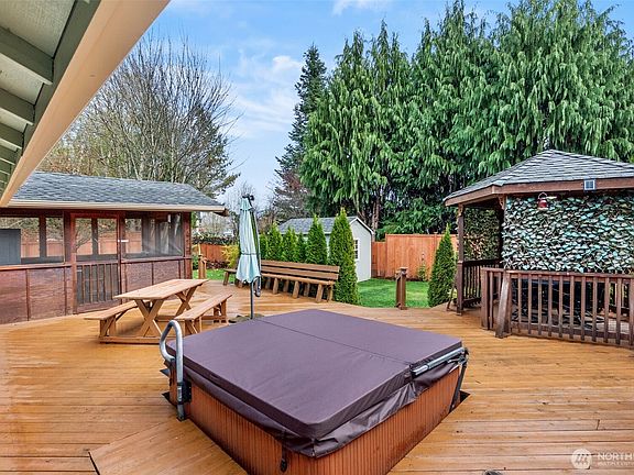 Capture the charm of single-story living in this thoughtfully UPDATED home set on a peaceful .3-acre lot in Tumwater’s Parkridge! Manicured grounds & stunning curb appeal set the tone, while inside, a fabulous chef’s kitchen steals the show with custom cabinetry, quartz counters, ss appliances & contemporary lighting—open to dining, living & family rooms for effortless flow. A screened sunroom off the kitchen, provides the perfect covered spot for summer buffets & easy indoor-outdoor entertaining. Step onto the expansive deck w/hot tub & gazebo or retreat to the serene primary suite w/ LUXE full-tile, walk-in shower, dual closets & direct hot tub access! All the features you love in a space designed to be beautifully manageable & inviting!