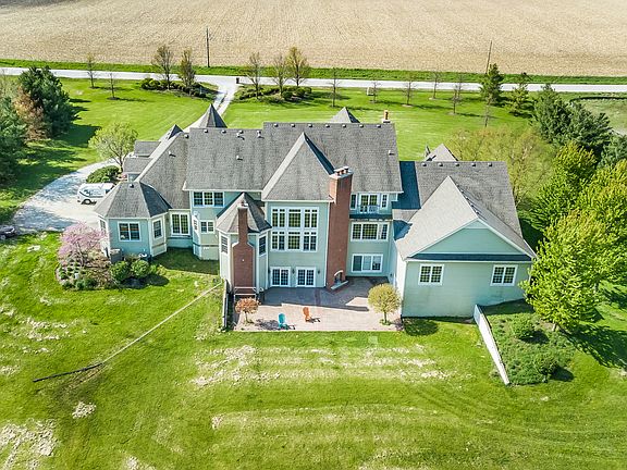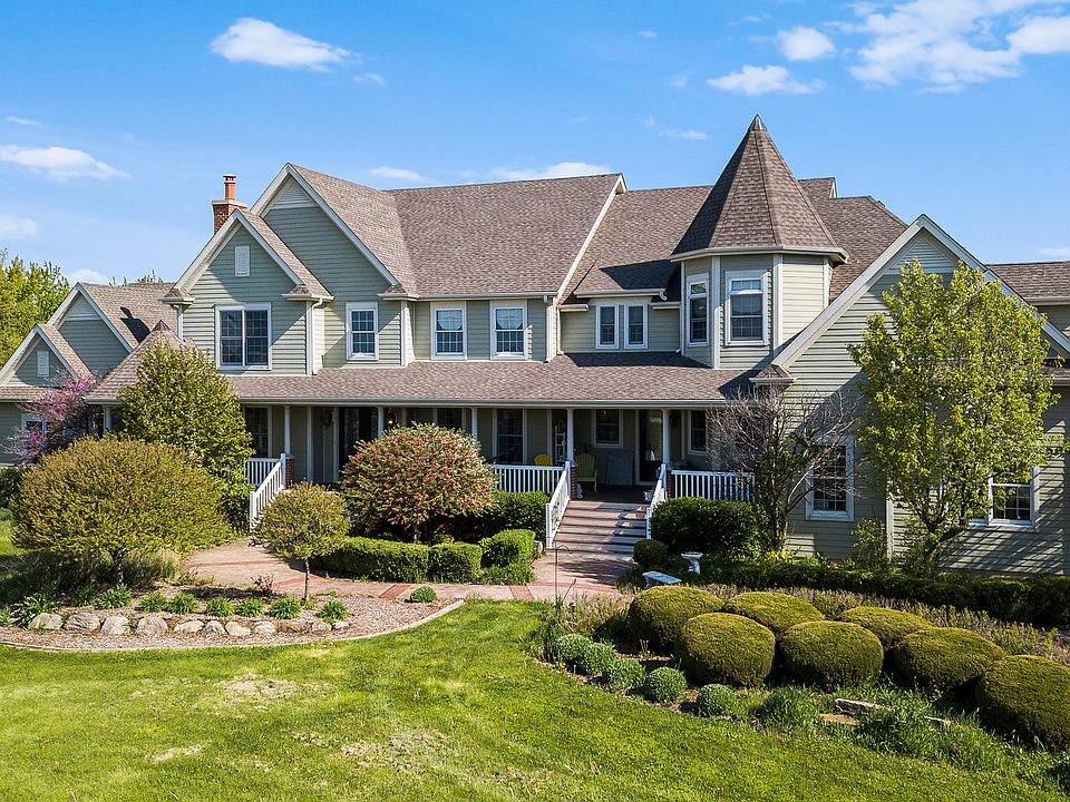 RURAL LUXURY ESTATE HOME ON 5 ACRE! Wide, Wrap-Around Porch; Grand 2-story entrance with Marble Flooring; 6 BR; 5.5 BA; 5 Fireplaces; 3-Car Garage. Gourmet Kitchen w/Granite counters & tile back splash. Commercial grade SS appliances (Double Oven, 6 Burner Stove, 2 Dishwashers, Microwave/warming drawer & Farmhouse Sink. Huge Island w/Granite counters, eating area, sink & additional storage. So many possibilities with the lower level - Huge, Unfinished Walk-Out Basement has 10 ft ceilings, w/ fireplace & brick paver patio with outdoor fireplace - also with stairs to the garage. Basketball / Entertaining Room is 35x60. 10+ Foot Ceilings in every room along with vaulted, tray & turret ceilings. Beautiful wide white trim and crown molding. Cherry flooring throughout. 2 Stair Cases-white & wood stained. 2 Jack & Jill / Shared Baths. 1st & 2nd Floor Laundry Rooms. Original owner was a builder. Security System. Plenty of room to build a barn or outbuilding for the toys. Horses allowed. E-1 Zoning.Master Bath & 1 Full Bath still needs finishing plus other smaller items. Seller will continue to work on smaller items. TOO MUCH TO LIST...THIS IS A MUST SEE!! DON'T MISS THE 3D WALK THRU TOUR!