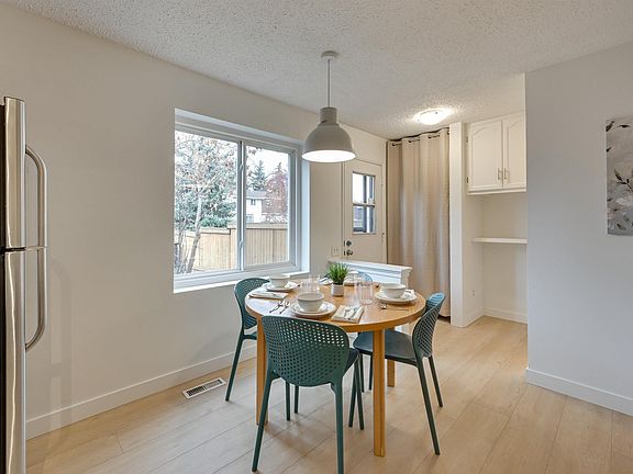 Welcome to this beautifully updated 3 bed + 2 bath townhouse in the sought after complex of Stratford Square in Thorncliffe! Step inside to a bright and functional living room featuring new flooring and modern lighting, an inviting space to relax or entertain. The adjacent L-shaped kitchen offers plenty of space, highlighted by stainless steel appliances and a brand-new stove hood fan. Upstairs, you’ll find new carpeting throughout and a cozy primary bedroom that’s perfect for unwinding at the end of the day. Two additional bedrooms provide flexible options for the kids, guests, or a home office. You’ll also have peace of mind with a new 2025 hot water tank and furnace. Outside, enjoy a fenced backyard for summer gatherings, plus two outdoor parking stalls for convenience. The fully finished basement adds even more living space with a comfortable family room and a versatile den area. Conveniently located near excellent schools and immediate access to the Whitemud, Anthony Henday, and soon to be new LRT!