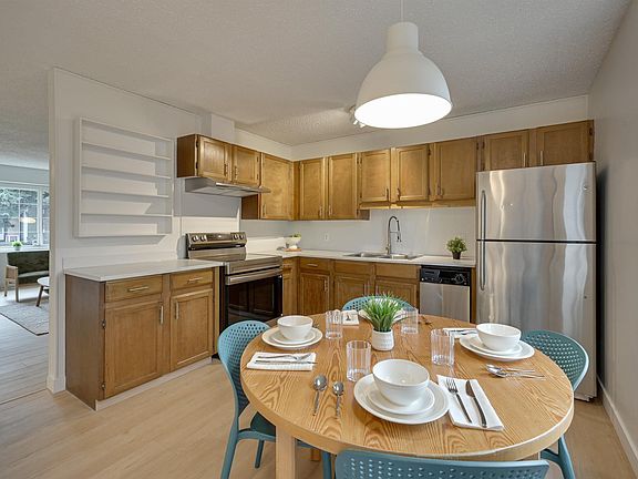 New flooringModern lightingL-shaped kitchenStainless steel appliancesBrand-new stove hood fanCozy primary bedroomNew carpeting