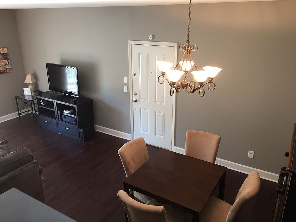 Beautiful end unit condo on the 2nd floor. Brand new engineered hard wood floor in the main living space and upgraded carpet in the bedrooms, brand new full size front load washer and dryer in-unit, wood grain tile in the bathroom with garden tub/shower, upgraded black appliances, upgraded counter tops, bay window in the master bedroom, and large walk-in closet! Overlooks tree line so feels very private. Must pass background check, credit check, and gross 3x's monthly rent. Absolutely no pets permitted.
