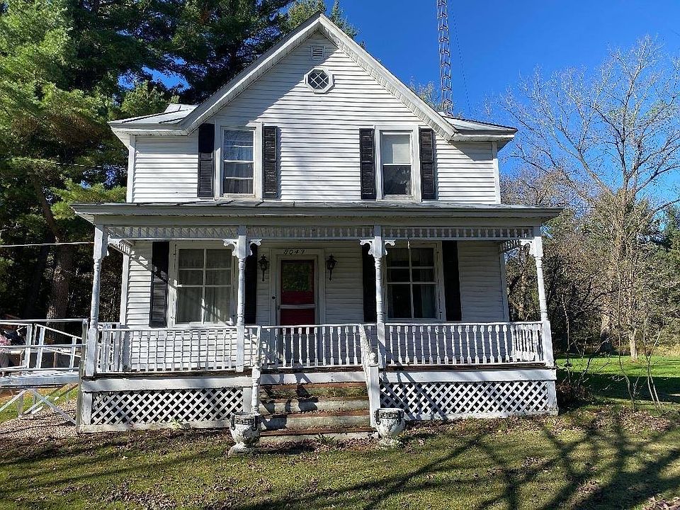 One look will do with this 2 story farmhouse located on 6.6 acres. This home has 4 bedrooms, 1 bath and 2 car garage and has endless possibilities with unique charm & warmth. A rustic lane leads you to a private place in peacefully woods with cabin and a breathtaking view of the pond. Watch the world go bye from this old fashioned front porch. If you're looking for a small town with country feel then look no further. Call today for your personal tour. ** wheelchair ramp and windmill not included**