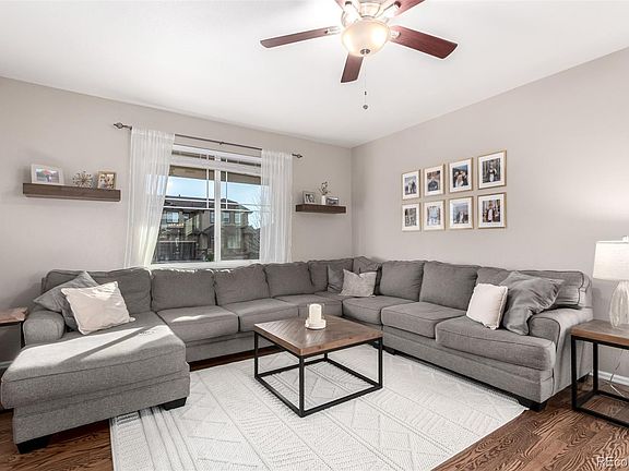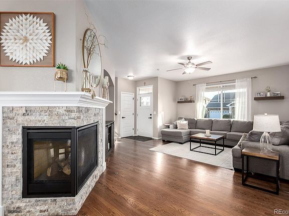 Step into a Banning Lewis Ranch home that’s ready to enjoy from day one! This beautifully maintained 5-bedroom, 3.5-bath residence blends modern upgrades, flexible living spaces, and a true community lifestyle—ideal for buyers seeking comfort, convenience, and room to grow. Rich hardwood floors, 9 ft ceilings, and fresh neutral paint set an inviting tone. A corner gas fireplace connects the living and dining rooms, creating a cozy Colorado backdrop. The gourmet kitchen features granite counters, a center island, double oven, gas range, pantry, and new gold hardware. The dining area opens to a stamped concrete patio with a hot tub that stays, offering easy indoor–outdoor flow. A large front porch with Pikes Peak views provides a relaxing spot to enjoy Colorado sunsets.