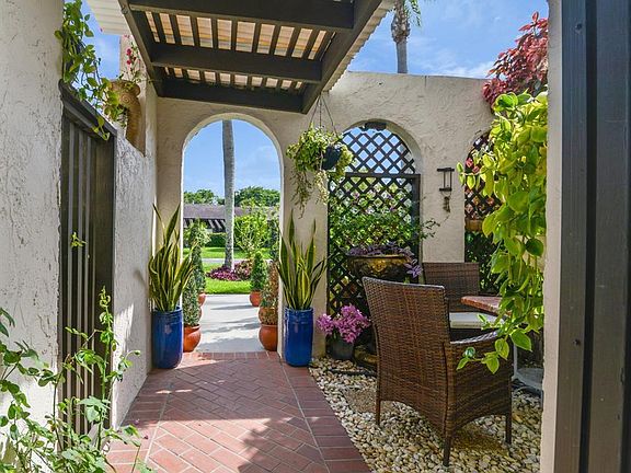 Beautifully renovated townhouse in the Greens of Boca Lago. This stunning residence features two master bedrooms, 2.5 bathrooms, and is nestled in the lush, gated community of the Greens at Boca Lago. The beautifully updated ground floor unit offers the perfect blend of comfort, style, and serene South Florida living, ideal for a full-time resident.Step inside to an inviting open concept layout, featuring a spacious living and dining area perfect for entertaining and relaxation.The kitchen is tastefully designed with modern cabinetry, marble countertops, double oven, two sinks, and stainless steel appliances. The primary suite is a tranquil retreat with a generous walk-in closet, two extra closets in the main bedroom, and an elegant en-suite bathroom. The second bedroom also offers it's or a home office. An additional powder room adds convenience for visitors. One of the home's most distinctive features is the expansive 200-square-foot enclosed lanai, offering peaceful water and garden views and direct access to lush green spacean ideal spot for morning coffee or evening wind-downs.
