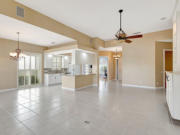 MOVE IN READY, this pool home features 3  bedrooms plus a den.   The primary bathrooms unique design creates a two - in - one utility, with a pocket door separating each half, shared by a dual access shower.  The kitchen, updated in 2022, features new cabinets, countertops, and appliances. Plantation shutters on all windows provides a elegant look and feel for the home.  This home was built with double the insulation of the standard model as well.The home's backyard is a true oasis, with lush landscaping and a spacious screened patio.  The inviting pool area and lake view provides for perfect relaxation and entertainment.  Full accordion shutters as well. Additional features include a full attic with stand-up storage, a garage w/epoxy flooring,  and a central vac system. Villagewalk is a true paradise, offering a 24 hour manned, gated entryway, two pools, tennis, basketball, and bocce courts, clubhouse with full fitness center and cafe, lakes, and walking trails.  Enjoy Comcast/Xfinity Cable TV and high speed internet, house alarm monitoring, house painting an pressure cleaning, and full landscape maintenance.  Welcome Home!