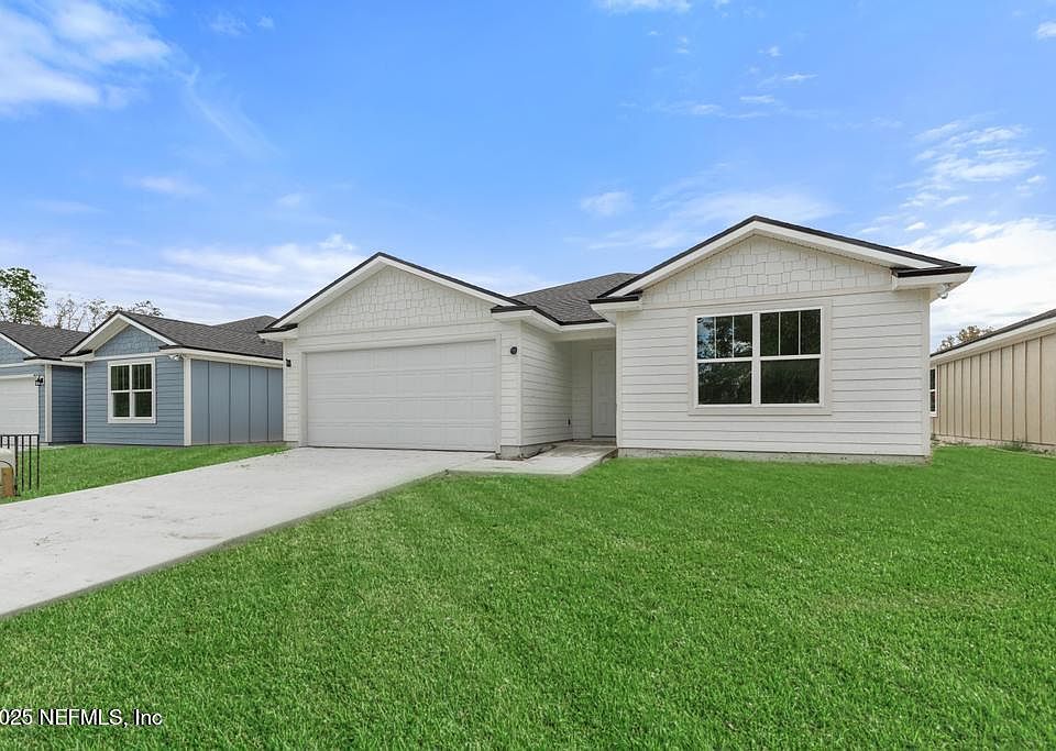 Almost Complete! Move-In Ready in 2 Weeks! New Construction Nestled on a peaceful dead-end street with other new homes! Enjoy the coastal curb appeal and an open floor plan. Located in Jacksonville with no HOA, this home features 3 bedrooms, 2 bathrooms, a spacious 2-car garage, and plenty of natural light. The backyard is ready for your oasis. Inside, enjoy luxury vinyl plank flooring, white cabinetry, stainless steel appliances, and quartz countertops. Includes a warranty for peace of mind. Perfect for first-time buyers or investors—no rental restrictions! With a motivated seller and competitive pricing, this opportunity won't last. Ask about fencing options, closing costs, and rate buy-downs today! Inquire within!