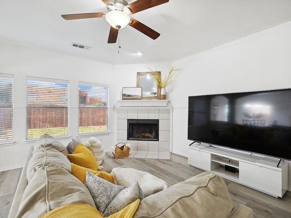 Welcome to your dream home! This stunning spacious residence boasts recent updates, including newer 2 HVAC 5-Ton 17 seer units (2021), wood fence (part in 2022), vinyl floors (2021), carpet (2019), roof (2021), and stainless steel appliances (2021). The family room features a cozy wood-burning fireplace, ideal for gatherings. The master bedroom is conveniently located downstairs, and upstairs, you'll find all secondary bedrooms, a versatile 3rd liv or flex plus media. Schools are within walking distance, making this home perfect for families. With spacious rooms, a tranquil neighborhood, and proximity to amenities, this property seamlessly combines comfort and convenience. Don't miss this opportunity to own a move-in-ready, charming home!
