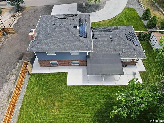 Stunning energy-efficient solar home offers 3 Bedrooms, 4 Bathrooms and a newly Finished Basement with over 2,400 SF of versatile living space. Nestled within the desirable Fairview Heights neighborhood of Littleton, this home features incredible curb appeal and a meticulously maintained .28-acre lot. Parking is never an issue with a 2-Car Attached Garage, dedicated RV parking with electrical plus space for 8 additional vehicles—ideal for accommodating guests, storing recreational toys, or keeping a boat or trailer conveniently on-site. Inside, the split-level floor plan boasts a welcoming main-level Living and Dining Room along with an updated Gourmet Kitchen showcasing stainless appliances, granite counters, tile backsplash, pantry and a casual eating area with direct access to the expansive covered patio. The spacious lower-level Family Room is anchored by a cozy fireplace, while the newly Finished Basement impresses with a modern 3/4 Bathroom, Laundry Room, Bonus Room and versatile flex space. Thoughtfully plumbed for a kitchenette or wet bar, the Basement offers endless possibilities for a private mother-in-law suite, guest retreat, home office, or entertainment hub. Upstairs, you’ll find 3 Bedrooms and 2 Bathrooms, including a serene Primary Suite complete with dual closets, a private balcony and en-suite 3/4 Bathroom. The park-like backyard provides a true retreat with mature landscaping, storage shed and covered patio ideal for outdoor living and entertaining. Owned solar panels not only reduce monthly energy expenses but also provide opportunities for future enhancements such as electric vehicle charging or expanded sustainability upgrades. Excellent Littleton location with convenient access to CO-470, Santa Fe Drive, Chatfield Reservoir, Aspen Grove, area schools, shopping and dining, making this home a perfect blend of energy efficiency, modern updates and flexible living.