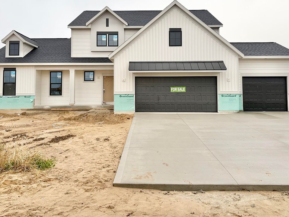 JTB Homes presents the Sycamore plan in the Railside neighborhood. This home sits on just under 1 acre in the Byron Center school district. The primary bedroom is on the main floor with 3 more bedrooms upstairs. The spacious primary features a cathedral ceiling with a large walk-in closet. It also has its own private bathroom with dual-sink vanity and ceramic tile shower. The 2-story living room has a gas fireplace and offers a great place to entertain. It seamlessly transitions to the dining area and kitchen where you find an island, pantry and solid surface countertops throughout. Main floor also has a flex room, laundry room, mudroom. The backyard features a 16x16 patio. Estimated completion is January