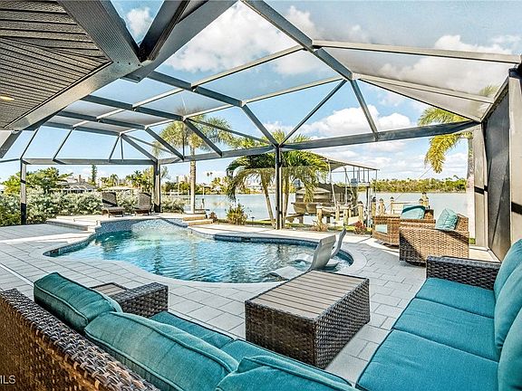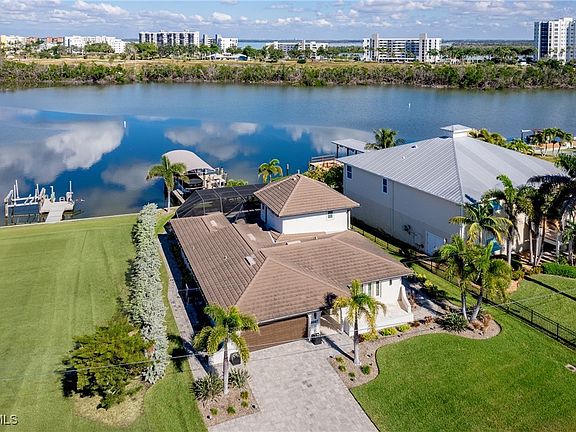 This exceptional crown jewel, nestled on a quiet lagoon off Estero Bay, exemplifies the finest craftsmanship for the most discerning buyer. Timeless architectural character encompasses Front Row views of the Lagoon blend with modern architecture from the flat tile roof to include hurricane rated windows and sliders, custom oak stairway, porcelain tile work, stone work and hand-crafted wood work around door frames, baseboards, and cabinets. Total 3 bedrooms and 3 baths. The primary suite encompasses the circular 2nd floor with a Spa-like bath, walk in closet & waterfront view. On level one, step out to the resort style heated pool with made to order fountain, sundeck, bubbler and built in table. Fabulous outdoor kitchen and bar features stone counters, storage, refrigeration and marine grade stainless steel grill. Laguna Shores home is positioned on 60 feet of waterfrontage in a ''no wake zone'' to protect the dolphins and manatees while capturing stunning panoramic views of the wildlife preserve. Other amenities include a newly constructed dock with 16,000 pound covered lift with wrap around captains walk to hold your dream boat. The home also features a two car garage, generator, 2 a/c units and flood gates. OMNI Hub app remote access provides pool control from your tablet or cell phone while you are away. Also, for the person who wants their toes in the sand, there are two community beach access points on Estero Blvd.
