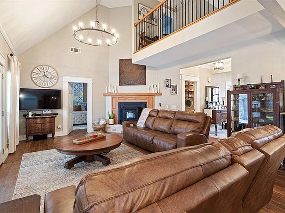 Set on 2.96 private acres,this 2,870 sq ft home offers comfort, functionality, and great outdoor living. It features 4 bedrooms, 3 full baths, a dedicated office, and a bonus room. The open living/dining area is the heart of the home, featuring an extended countertop bar and seating with views into the kitchen. A pellet stove creates a warm, inviting atmosphere.The primary suite includes two walk-in closets, a walk-in shower, twin sinks, and a soaking tub. Storage is plentiful, especially upstairs where a large attic storage room features a full-size walk-through door. Outdoor amenities include a covered back patio, brick paver sun deck, gazebo with brick wood-burning fireplace, hot tub, greenhouse, and a professionally maintained saltwater pool. A backyard playset adds family appeal. A perfect place for mechanics or car enthusiasts, the property includes a 2-car attached garage, 2-car carport, and a large concrete pad leading to a 4-bay workshop building with three oversized overhead doors and RV parking overhang.
