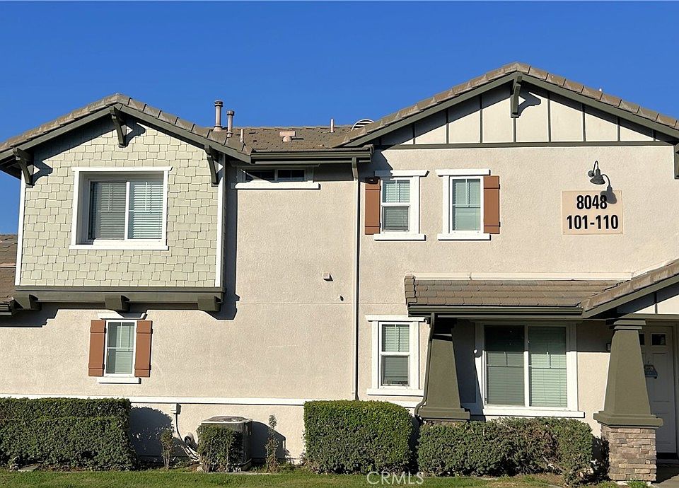 Experience comfortable living in this charming condominium for rent, located within the gated Main Street Association community in Rancho Cucamonga. Offering 2 spacious master suites with dual sinks and walk-in closets, 3 bathrooms, and 1,365 sq ft of living space, this home features wood flooring in the main living areas, carpeted bedrooms, recessed lighting, ceiling fans, dual-pane energy-efficient windows, central air and heat, and a cozy gas fireplace. The well-designed kitchen includes a walk-in pantry, and the home also provides direct access to a connected 2-car garage. Enjoy a charming gated front porch along with beautifully landscaped community grounds that include greenbelts, a BBQ area, and a sparkling pool. Conveniently situated near Foothill Blvd and Hellman Ave, this location offers easy access to shopping, dining, and local amenities.
