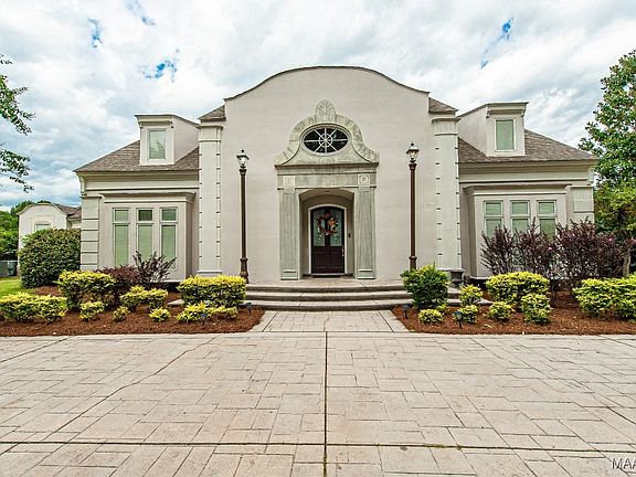 Step into the timeless elegance of this French Provincial country estate, where old-world charm meets modern luxury. Nestled on the top of Westchester Place cul-de-sac, this beautifully appointed home features classic architectural details such as arched passageways with limestone pillars, marble floors accentuating the foyer, study and formal dining room, a Grecian pool, fountain and sprawling view of the 8th hole. Note soaring ceilings, mahogany woodwork, leaded stained-glass accent windows, and an authentic English pub imported from Europe. The estate boasts 4 spacious bedrooms with 4 full baths, extensive walk-in closets and oodles of storage. Main-floor squire's bedroom features an elegantly painted arched ceiling reminiscent of the Biltmore estate library, double-sided fireplace (seen from bed or bath), adorned by wooden cabinets & drawers, elegant hardware, and Pella windows. An ensuite bathroom with large spa tub, massive shower encased by block tiles, double split vanity and enormous walk-in closet with built-ins. A cheery sunroom with tile floor gives an awesome view of the gunite pool & golf course. Experience the warmth & sophistication of the family den, gas fireplace, rich hard wood floors, accented by massive moldings, built-in bookcases, bar & entertainment center. Large windows flood the room with natural light. A chef's gourmet kitchen with custom cabinetry conceals ingenious shelving for spice racks & appliances, Jenn-Aire stove, wine cabinet, granite countertops, marble backsplash, and entry to a private terrace. For ease of entertaining, open the glass doors to outside recreation including a gas cooktop for sizzling steaks. A 2nd floor recreation room, surrounded by custom woodwork, gas fireplace, English pub, and spectacular view of the 8th & 9th hole creates a serene ambiance. A spiral staircase leads to the loft for billiards or ping-pong. Want to slip away? Two bedrooms with private baths, walk-in closets and storage galore are steps away.