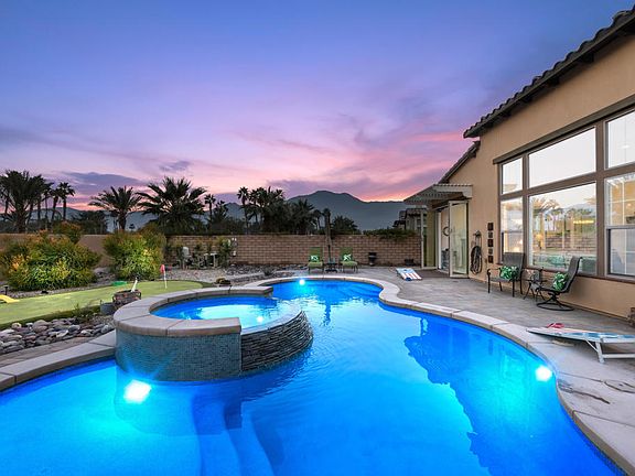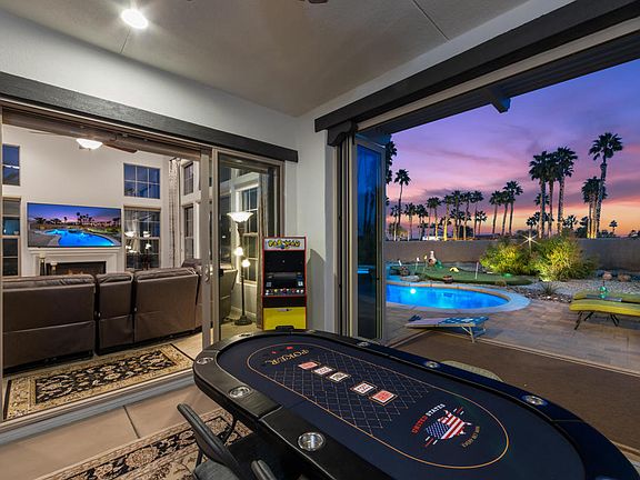 Short term rentals allowed here! Please check with city of La Quinta for STR permits and rules. Incredible home on one of the largest corner VIEW lots in PGA West Signature. Well appointed back yard with custom pool, spa, putting green, fire pit and multiple sitting areas. There's even an enclosed patio with folding doors and fireplace.Multiple floor to ceiling windows bring in lots of natural light. There's a large living room with fireplace that opens to the custom styled kitchen with stainless steel appliances, large center island, rich wood cabinets and granite countertops. There are 3 bedrooms and 3.5 baths that make this the perfect retreat for family, friends, or renters. Conveniently located downstairs are two of the larger bedroom suites with full bath. The upstairs bedroom suite can accomodate 4 people and also has its own bathroom. 2 Car garage plus a golf cart bay is a bonus too!The community offers a fitness center, clubhouse, pool, spa and of course world class golf. Sold turnkey furnished per inventory.Seller motivated.