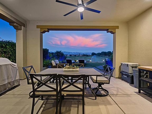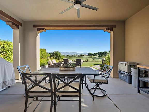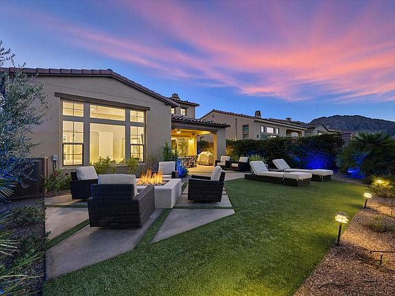 Experience refined desert living at this exceptional home located on the world-renowned Stadium Course at PGA West. Just steps from the clubhouse, this residence provides unmatched proximity to the excitement of the annual American Express PGA Tour, while also offering an intimate escape of privacy and comfort.The outdoor setting is designed for both relaxation and entertaining, featuring a built-in fire pit with seating, all framed by dramatic mountain vistas and colorful desert sunsets. It's a seamless blend of sophistication and resort-style leisure.Inside, the home offers 4 bedrooms and 4.5 bathrooms, thoughtfully designed with generous proportions. The gourmet kitchen stands at the heart of the residence, showcasing an expansive island, striking dark cabinetry, premium appliances, and tasteful finishes that elevate everyday living. With newer construction, the property benefits from well-maintained systems--including HVAC, pool equipment, and appliances--ensuring comfort and efficiency. Modern tile plank floors, substantial baseboards, and a versatile two-level layout complete the interior.Set within a highly desirable enclave of PGA West, this home merges prestige, comfort, and timeless style. Furnished per inventory.