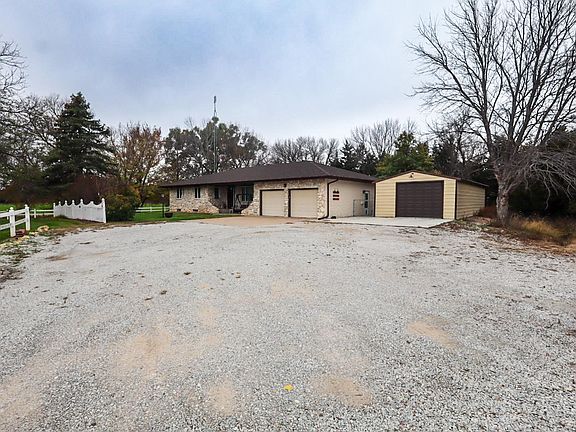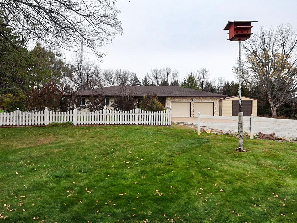 Country charm on just over 1 acre of peaceful property with concrete almost to your drive! This 5 br, 2 bath ranch style home offers a sweet layout with 3 bedrooms on main level and 2 non-conforming downstairs. Wind down in the luxurious air jet tub or kick back under the large covered patio, complete with ceiling fans to keep you cool! Bonus out building with work bench, shelving and 2 stall parking, in addition to the 2 stall attached garage. House has a newer Generac whole house back-up generator.