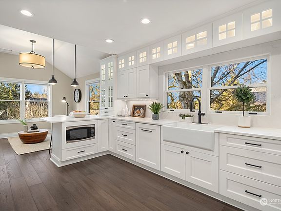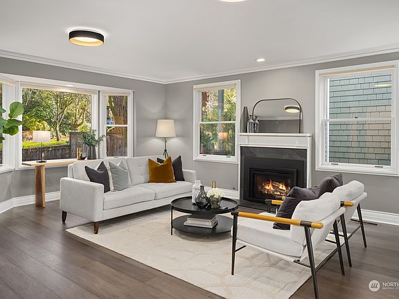 Exquisitely updated Washington Park home on a picturesque tree-lined street. Stunning kitchen with high-end custom cabinetry, stainless steel appliances and large windows, all bathed in west-facing afternoon sun. Spacious deck with expansive territorial views connects the kitchen, dining and sitting rooms and overlooks the large backyard. Beautiful hardwood floors flow throughout the circular floor plan with elegant living and dining rooms. The primary suite features a gorgeous bathroom, walk-in-closet, office space, sitting area and private balcony. Daylight lower level includes three bedrooms, an oversized media / game room, full bath and laundry room. Two-car garage, A/C, updated systems, all just blocks from the shops of Madison Park.