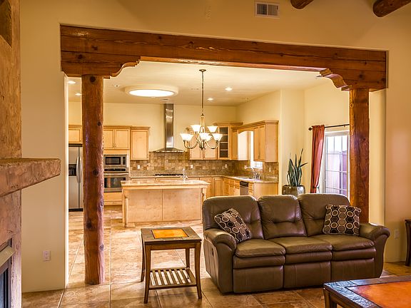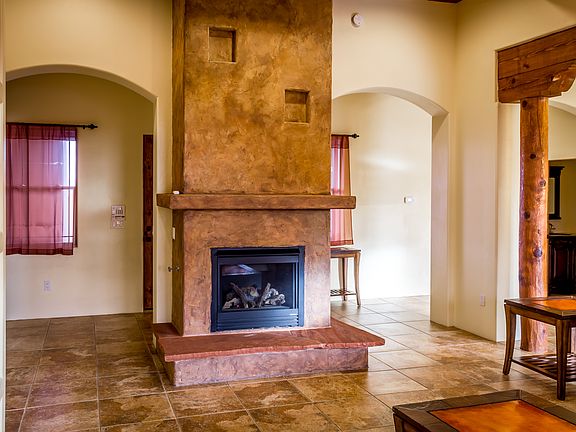 Gorgeous Southwest style home on a half acre with amazing views of the Sandia Mountains! Enter the home through the large gated courtyard. Inside you will find a large open living area with travertine floors, wood beamed ceilings, built in's and a custom wood burning fire place. The gourmet kitchen is open the to the eat in dining area and living space. The kitchen hosts custom cabinetry, granite countertops, built-in oven/microwave, stainless steel appliances, a back splash and large skylight. Bedrooms feature wood plank tile flooring. In the master bedroom enjoy a wood beamed ceiling. Master bath has a jetted tub with tile surround. custom vanity, double sinks and a tiled walk in shower. Enjoy sunsets from the covered patio. Two storage buildings/workshop separate from the home.