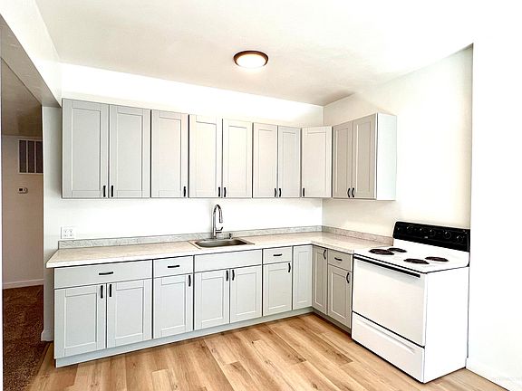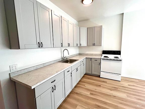 Within a brisk walk to the Rupert Town Square, Wilson theatre and all the shops and dining the Square has to offer, this recently updated bungalow is just what your looking for. The home features new exterior paint, modern lvp flooring, new carpet, new light fixtures. The kitchen has new kitchen cabinets and countertops, and is spacious with plenty of room for a good sized dining table. The second living room and the unique tall ceilings make the space feel large, open and comfortable for all the gatherings . New furnace and tankless water heater helps with utility efficiency. Mature backyard trees keep the the porch area shaded for your summer barbecues. Make an appointment today.