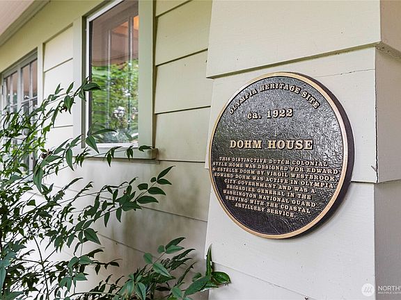 Welcome to the Dohm House on Olympia's Historical Society. The Dutch Colonial built by Edward Dohm in 1922, using designs from Architect Wm. Westbrook, & lovingly cared for over the last 103 years by his family. The early 20th-century craftsmanship offers a unique blend of historic character w/ modern updates for today's living. Crafted entirely of cedar w/period specific details. Raised panel wainscoting, coffered beam ceilings & mahogany floors add a regal flare to the living rm & dining rm w/a central FP. Featuring 5 generous bedrooms, 2.25 baths, office & 726+/- sf in a finished attic for a complete 3rd floor. Kitchen, sunporch & baths have been remodeled & boiler & HW heater are quite new. Lovely terraced yard w/view of Cap Lake/Dome.