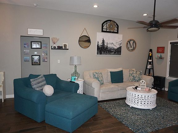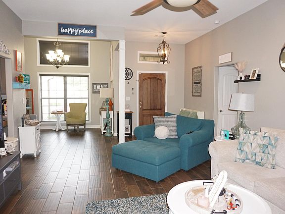 This one is a show stopper! Beautiful inside and out. Gorgeous flooring, very open floor plan with a huge living room plus dining or sitting room and a breakfast bar in this beautiful kitchen. Pretty granite countertops, stainless appliances and tons of cabinets in the kitchen. The laundry room has lots of cabinets for more storage. So many windows in this house for lots of natural light plus beautiful blinds so you can decide to let the light in or keep the blinds closed. The primary bedroom is great size and has a beautiful en suite bathroom with a soaking tub and a beautiful new custom tile shower. Granite countertops and double sinks in this pretty vanity and a huge walk in closet. The main bathroom also has a granite countertop vanity and tub shower unit and is conveniently located off the kitchen and also close to the other 3 bedrooms which are all good size rooms and all have great closet space. The privacy fenced back yard has a covered back patio with tons of room for outside entertaining. Sellers had new gutters installed along with a new mini split heat and air unit for the 4th bedroom.