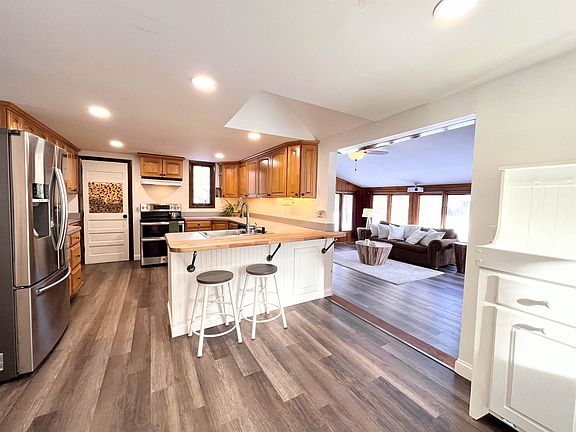 Looking for a home right next to the water? Come check out this newly updated home with the Suncook River in your backyard. Enjoy fishing, swimming, kayaking, or whatever else river life has to offer. Complete with a NEW METAL ROOF, 34 new and owner-owned SOLAR PANELS, a large garage complete with a CAR LIFT, air compressor, and home office, new flooring throughout, and new R30 spray foam insulation. Quiet neighborhood in a country setting; large backyard space for all your activities. Great commuter location to all the major surrounding cities, seacoast, white mountains, and lakes region. OPEN HOUSE - Sat. 2/18 12PM - 3PM