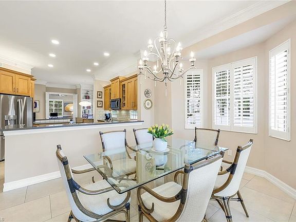 Experience the best of Naples’ resort lifestyle in this beautifully renovated, light-filled end-unit at Breakwater in Pelican Bay. Perfectly positioned with southern exposure and expansive lake views, this stunning three-bedroom home combines timeless elegance with modern sophistication. Step inside to discover a reimagined open-concept great room floor plan bathed in natural light, highlighted by 10-foot ceilings with crown molding, walls of plantation shuttered windows, and large-format tile flooring that adds continuity throughout the home. Serving as a centerpiece, the custom-designed kitchen features exquisite soft-close light wood cabinetry, quartz countertops, and a classic subway tile backsplash, creating a stylish haven for both casual and formal entertaining. Off the kitchen is a flex space that could be personalized as a casual dining area, reading nook, or home office. The great room flows naturally into a sun-filled Florida room with floor-to-ceiling impact rated sliding glass doors, extending the living area and inviting the outdoors in. Savor morning coffee as birds glide across the water or unwind in the evenings beneath a canvas of breathtaking sunset skies. Thoughtful upgrades including motorized Hunter Douglas sun shades, electric storm shutters, and custom closet built-ins, combine elegance with effortless functionality. The oversized two-car garage is the finishing touch that brings both practicality and prestige to this exceptional residence—an uncommon luxury in Pelican Bay. Breakwater amenities elevate everyday living with a gated entrance, clubhouse with pool and spa, BBQ area, and social and exercise rooms, all set along charming brick-paver streets. Pet owners will delight in Breakwater’s pet-friendly environment, a true rarity in this prestigious community. Residents also enjoy the preeminent Pelican Bay lifestyle, including two private beachfront restaurants, miles of pristine Gulf beaches with exclusive access, canoeing and kayaking in picturesque Clam Bay, two world-class tennis centers, a state-of-the-art fitness and wellness center, and optional golf and social memberships at Club Pelican Bay. Ideally located just minutes from Mercato’s vibrant dining and shopping scene or a short drive to Downtown Naples, where endless culinary and cultural delights await.