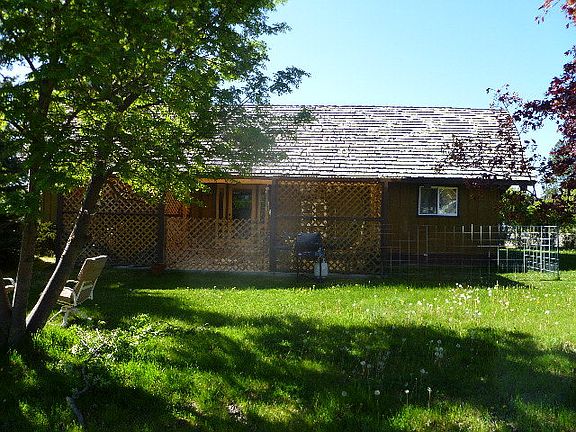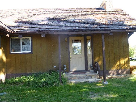 Country living in the city. 1.22 acres with mature landscaping, lots of mature trees, plum, Apricot and peach trees. Attached garage as well as a two car carport attached. High beam ceilings and newer windows. 2 large bedrooms downstairs and a bath and a half. Large kitchen, and large living room. There is a loft upstairs that can be used for additional bedroom. Recessed lighting. A lattice enclosed back room off of living room for a nice barbecue and sporting a hot tub. This home is very well maintained including newer windows and many upgrades. The home has a new 75 year cedar shake roof. Features a propane insert within a floor to ceiling river rock hearth. Large windows for a fantastic view of the Mountains. The floors are carpet and laminate. Underground sprinklers and chokecherry bushes. What a great great property. An additional .68 acres can be purchased for $40,000