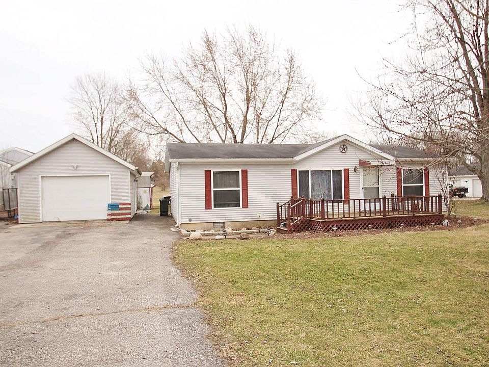 On the outskirts of town! This home is a 3 bedroom/2 bath home on nearly 1.5 acres! This home features brand new carpet, split bedroom floor plan, open kitchen and more! Exterior features an oversized detached garage, 2 sheds, rear patio, front porch and sits on 1.4 acres!