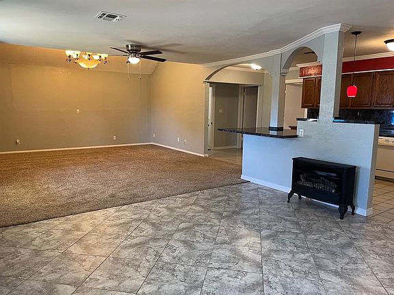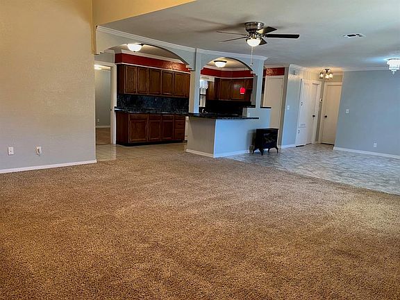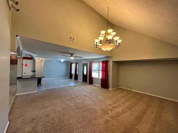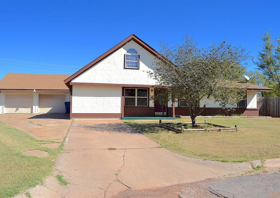 This 3 bedroom, 2 bath home sits at the end of a cul-de-sac. It has been freshly painted and ready to move into! As you enter through the front door you immediately feel the spaciousness of this home. The kitchen is open to the large living room and dining area. To the right you will find an oversized bedroom as well as a hall bathroom. Behind the kitchen is a family room / bonus room with an exit door to the backyard. The primary bedroom has it's own bathroom and two closets. There is an inside storm cellar. The two-car garage will keep your vehicles safe from our Oklahoma storms. In the huge backyard you will find an outbuilding. This home is being sold as-is due to the possibility of the roof not being insurable. It doesn't leak but has had hail damage in the past. Come check it out!