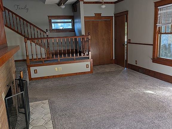 The main level features a recently updated kitchen and newly installed dining room flooring, enhancing both style and functionality. Beautiful hand-crafted woodwork extends throughout the home, adding warmth and timeless appeal. A charming wood-burning fireplace serves as a cozy focal point for the living area. The home's layout offers ample room for living, entertaining and everyday convenience.