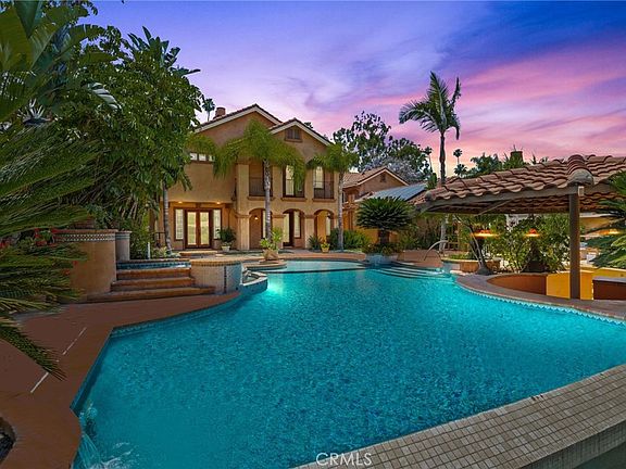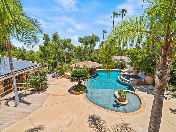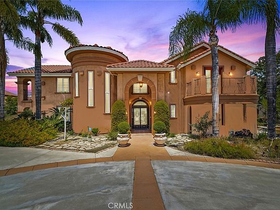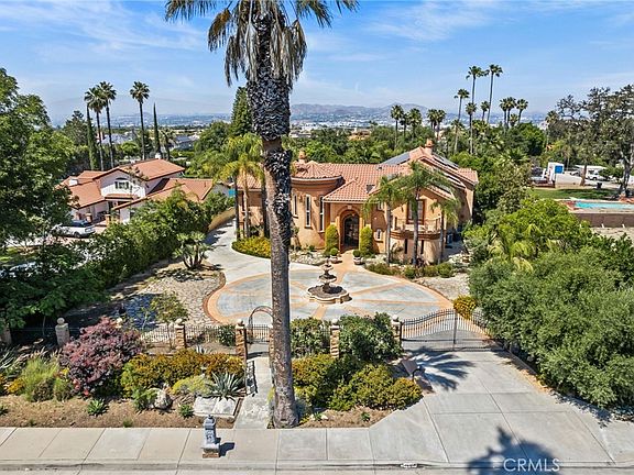 Luxurious Spanish Mediterranean Luxury Estate has EVERYTHING to offer! Almost 6,000 SF feet of elegant living space in the Main House + an 800 SF Detached Casita/ADU! It's Nestled in a distinguished neighborhood in South Corona & sits on almost an Acre of land! This Privately Gated Property offers, Lifestyle, Beauty, Comfort & Space! Stepping into the Grand Foyer, you will experience the Exquisite Marble Flooring that adorns most of the home! The Dramatic Domed Ceiling Formal Living & Dining Room are captivating! An adjacent private Study shares a Fireplace with the Living Room. Natural Light floods the interiors of this gem through Countless Windows, providing flowing Natural Light throughout this palace! The Open Concept Kitchen & Huge Family Room & Fireplace, are Palatial! Boasting Subway Tile Backsplash, 60” Gas Range, Sub-Zero Fridge, Cabinets galore, Wine Drawer Cooler, gated Wine Vault Wall, this area is perfect for creating Cuisine Masterpieces. Up the Front Spiral Staircase you’ll find the Theater entertainment/media room featuring acoustically enhanced ceilings with surround sound system ensuring optimal sound for movie night! Down the Hallway lies the Majestic Primary Bedroom featuring exquisite curved entry doors, Romantic Fireplace, Balcony & Panoramic View of your Tropical Backyard Paradise! The Spa bathroom features a multi-head, Jetted walk-in shower, large Jetted Bathtub, Two Large Walk-In closets and dual sink vanities. Three more Large Bedrooms feature Ensuite Bathrooms & one has a balcony! Solid Wood Entry & Closet doors are throughout! The Back Stairway features a Chair-Lift Elevator making the Upstairs Accessible! The Resort-Style backyard is Lusciously Landscaped, featuring a huge Infinity Edge Pool, Large Raised Spa, Swim-up Bar Pergola, Outdoor Kitchen & Fireplace Enclave. The Pool-Side Restroom includes a convenient Shower! The Large Casita provides more private, beautiful, space with living room, kitchen, bedroom, walk-in closet, bathroom, & washer/dryer. Paid-Off Solar Panel system helps power this whole Oasis! At the rear of the property sits The Orchard featuring numerous mature citrus, apple, fig & avocado trees! The epoxy floored Car Garage completes this package! Located near Highly Acclaimed Schools, Fabulous Shopping & Amazing Golf Courses, this home has it All! Many more features are yours to enjoy & experience! Contact us for your Private tour! This is an extraordinary Spanish Villa!