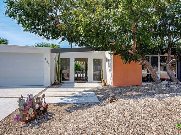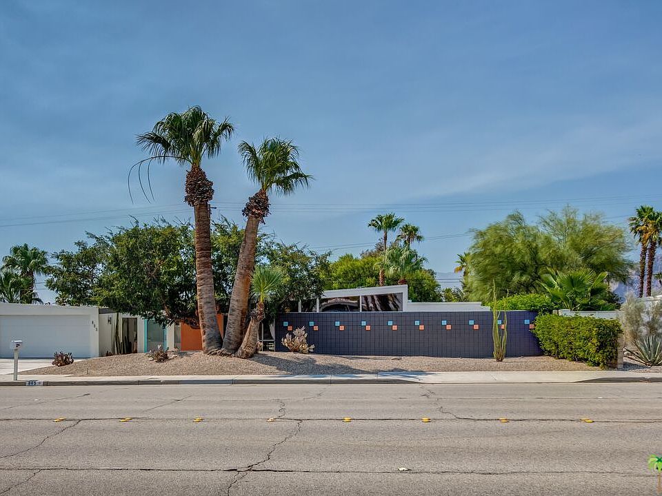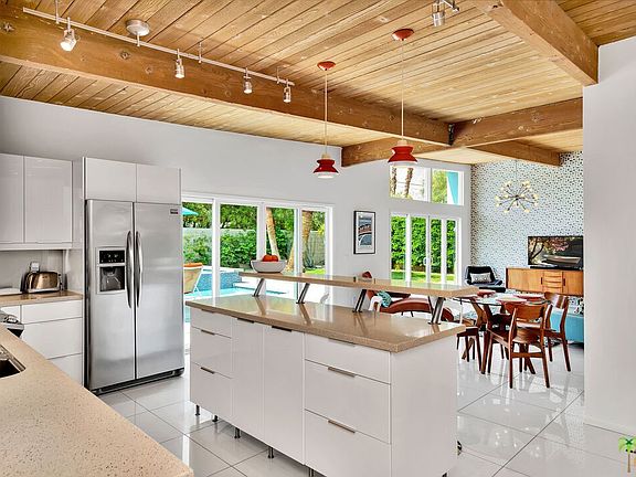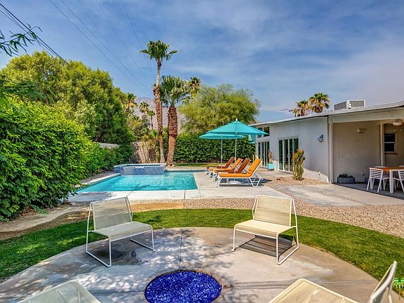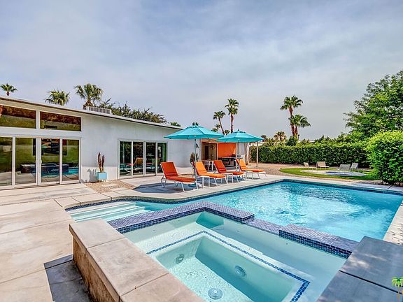 Spectacular pool home that embodies PS indoor/outdoor life. Built in 1959 by the Alexander Construction Co., known for their iconic mid-century masterpieces, floor to ceiling glass, clerestory windows and roof lines. This home boasts the very recognizable butterfly roof and tongue and groove natural wood ceilings. In 2010, owners did a remodel down to the studs and they have maintained it meticulously. There is an entry foyer where the breezeway once was with direct access to the garage, a poolside bath and a large backyard, which features an outdoor kitchen, fire pit circle, and a large pool and spa. Stunning mountain views. The Master suite includes a retreat which could be a study or TV room. Freshly painted inside and out. True mid-century style while providing modern conveniences and additional space. Gourmet kitchen with quartz counter tops and a breakfast bar. Beautifully and thoughtfully appointed. Racquet Club Estates neighborhood is hot, hot, hot!!