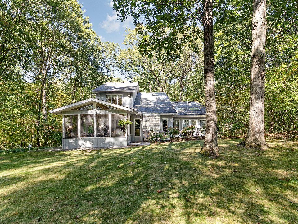 This picture perfect Beverly Shores home is nestled in privacy thanks to an adjoining side lot and an extra deep backyard that is surrounded by nature. The well maintained home has a nice open feel with high ceilings and plenty of windows. The main level offers a living room with a cozy fireplace, a dining room plus an eat-in kitchen, and the primary bedroom has an ensuite bathroom and French doors that open to a skylit reading nook with built-in bookshelves. Upstairs are two bedrooms, a 2nd bath and a spacious loft. The finished lower level provides plenty of extra living space with a large gathering room, two additional bedrooms and an unfinished storage space. Unwind on the screened porch, host barbeques on the patio or immerse yourself in a hobby or craft in the detached studio/workshop complete with electricity and heat. Main floor laundry room, attached 2 car garage and a new whole house generator. Ideally located with Lake Michigan two blocks away, woods and trails outside your door, minutes from local shops and restaurants and easy commuting on the South Shore from the Beverly Shores train station. Don't let this one slip away!
