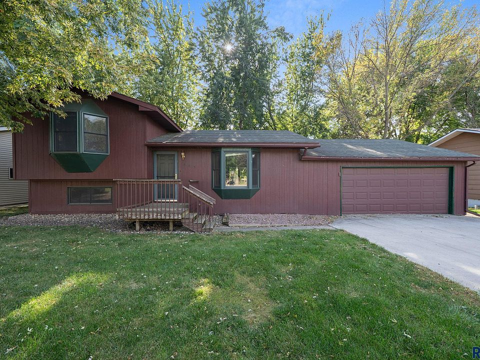 Welcome to this inviting multi-level 2-bedroom, 1-bath home in Crooks, SD! Enjoy fresh carpet in the living room, warm wood floor accents in the dining area, and natural light from two beautiful bay windows one in the living room and one in the master bedroom. The walk-out third-level family room offers a great space for relaxing or entertaining. The oversized two-stall garage provides plenty of room for vehicles, storage, and hobbies. The open fourth level is ready to be finished—ideal for adding extra living space or a custom touch. While out back you will enjoy the shade from the mature trees, or sit on the deck and enjoy the calm of outdoors. Located in a quaint neighborhood just minutes from Sioux Falls, this home combines small-town charm with easy access to city conveniences. Don’t miss this wonderful opportunity to own a comfortable and versatile home in a growing community!
