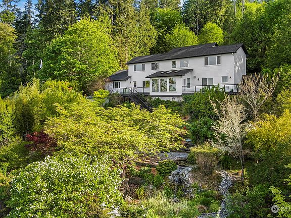 Live luxuriously with nature on the Olympic Peninsula. Watch the boats come in, eagles hunt and orcas play. This newly updated home has two primary bedroom suites, with two offices - one which can easily be used as a primary suite on the main floor. The perfect house for hosting friends, yet intimate enough just for you. Thoughtful, timeless gourmet kitchen with all the extras - including walk-in pantry, warming drawer, double ovens, and deep fryer. Stunning tiered garden path leads you past a pond and raised vegetable beds, down to your own private beach. Low-bank waterfront. Beach rights included. New hardwood oak floors throughout. You don't have to do anything--just get to living.