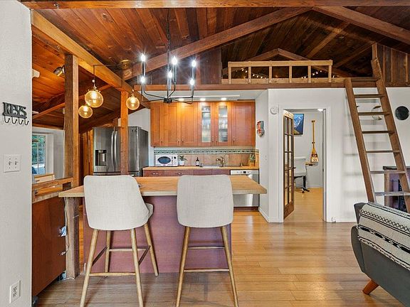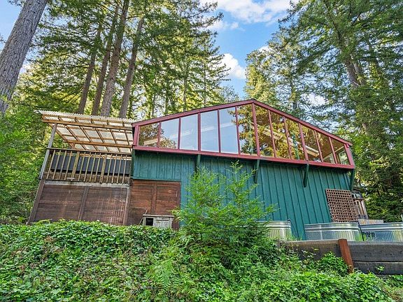 Located just over a mile from downtown Ben Lomond, 805 Fanning Grade offers the peaceful seclusion of a personal retreat while keeping you close to all the local attractions. Large windows in the living room frame stunning views of the redwood forest, while the recently renovated kitchen features stainless steel appliances, butcher block countertops, and a spacious island perfect for entertaining. The expansive covered patio is ideal for year-round outdoor living, with the soothing sounds of native birds and the occasional whistle of Roaring Camp Railroads. A lush garden with raised beds and an artist's studio add to the charm. With close proximity to the town, hiking, and mountain biking trails, this hidden gem offers an exceptional opportunity to embrace a tranquil lifestyle immersed in natural beauty.