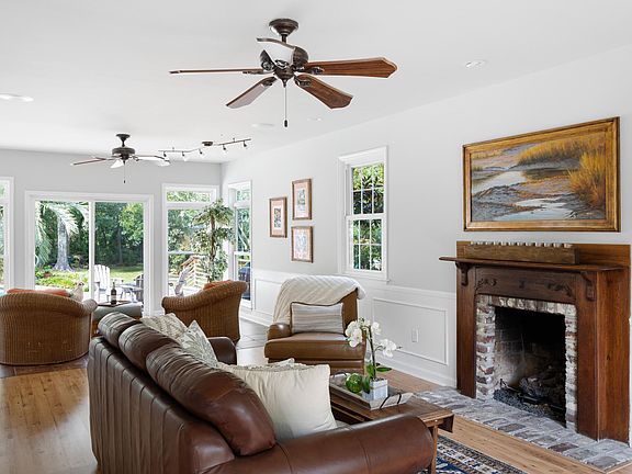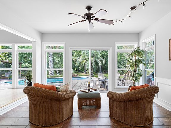 Backyard paradise in Snee Farm! Fabulous oasis lovingly created by the owners. House is set back on a double lot with beautifully landscaped yard and heated saltwater pool. The main house features a huge upstairs master suite with private balcony overlooking the pool, custom walk-in shower and double sinks. Laundry is upstairs plus two guest rooms and a hall bath. The former two car detached garage is now a 400+ sqft guest quarters with full bath, new roof, tankless hot water system and a private, outdoor shower. Can easily be converted back, but plenty of storage in 12' tall shed. Views of the pool from all across the back of the house. New wooden deck off the living room, which has a gas fireplace and in-ceiling speakers. Metal roof, new HVAC, hurricane rated windows and shutters.