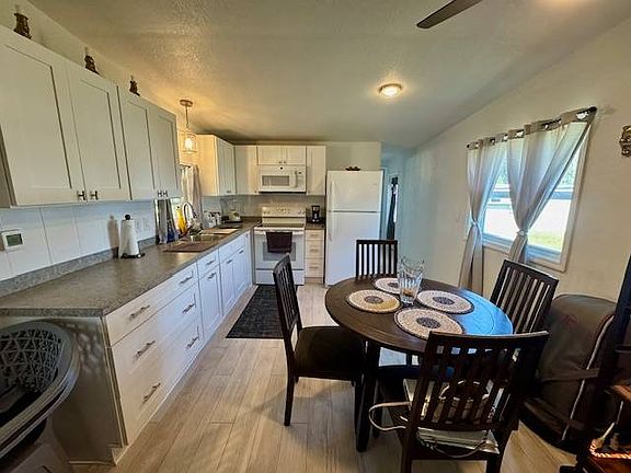 This stunning home was completely remodeled in 2023, offering a fresh, modern feel throughout. The kitchen features elegant white shaker cabinets paired with sleek Corian countertops, while the primary bathroom showcases a beautifully updated shower enclosure and rich granite countertops. Enjoy peace of mind with hurricane-impact windows (all except the front bow window) and a reinforced carport designed for extra protection. The interior boasts luxury vinyl plank flooring, new insulation, and fresh paint from top to bottom. A brand-new A/C unit with a 10-year parts warranty ensures year-round comfort. With two spacious driveways, there's room for up to four cars-one under the covered carport, which also offers a cozy sitting area to enjoy the evening breeze. The second driveway provides flexibility for an additional enclosure or carport if desired. This home comes partially furnished, including a comfortable sofa, full-size bed, and window draperies. The washer and dryer-just two years old-are conveniently located in the primary bathroom, adding a unique touch of convenience. Lot rent is $589 per month. Fountainview Estates is a pet-friendly 55+ community allowing two pets at 25lb max. Enjoy bass fishing, water skiing, and viewing beautiful sunsets from the clubhouse/dock. Utilities not included in lot rent. Owners pay electric, water, cable, and $25/year HOA. Heated Pool, Shuffleboard, Clubhouse with a kitchen, pool table, fireplace, library, puzzle box, and bingo. Great amenities with an affordable rent. The park is approximately one hour from beaches to the West, and Legoland and Disney World to the East. Fountainview Estates is situated near an abundance of shopping, restaurants, and medical services...most accessible by golf cart! Good news given today's gas prices. PARK APPROVAL IS REQUIRED with proof of income at least 3 times the monthly rent. MUST BE AT LEAST 55 years old to apply. Application fee is $50 cash per person (Canadian $85/ea.) Primary resident must be at least 55 y/o and 2nd must be at least 40 y/o. Must HAVE a credit history with no collections. Background checks. THIS IS A MOBILE HOME IN A PARK ON LEASED LAND, NOT REAL ESTATE. YOU MUST CONTACT THE MOBILE HOME LISTING AGENT FOR SHOWINGS. All listing information is deemed reliable but not guaranteed and should be independently verified through personal inspection by appropriate professionals. Our company does not and cannot guarantee or warrant the accuracy of this information or the condition of this property. Measurements are approximate. The buyer assumes full responsibility for obtaining all current rates of lot rent, fees, and pass-on costs. Additionally, the buyer is responsible for obtaining all rules, regulations, pet policies, etc., associated with the community, park, or home from the community/park manager. Our company is not responsible for quoting said fees or policies. Sales price doesn't include tax, dealer, or admin fee.