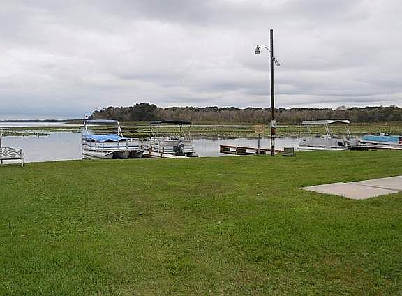 Lake Griffin Mobile home park, a nice 55+ community located directly on Lake Griffin with marina. 2 bedroom 1 bath fully furnished home with a sun room, inside laundry room, large shed, vinyl siding, and roof over. Located close to the wellness center, fitness center and pool. LB6420 Over 700 homes available at http://www.fourstarhomes.com