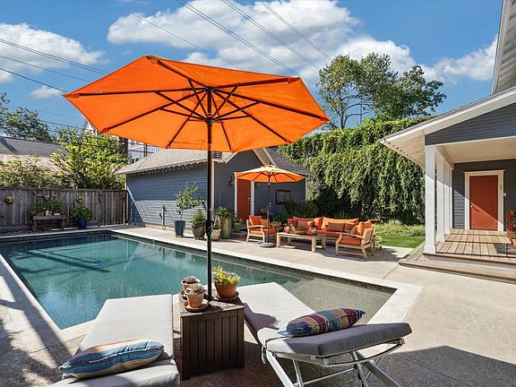 Located on an oversized lot with alley access, this Heights Boulevard home is steps from restaurants, shops, and the Heights Hike & Bike Trail with its rotating True North art. Originally built in 1916 and fully renovated in 2014, it retains period details including wood floors, antique doors, transoms, and detailed millwork, combined with updated electrical, plumbing, HVAC, and roof. The interior offers bright living and dining areas, a practical kitchen with a large island, and a flexible fourth bedroom that can also serve as an office. French doors open to a backyard with a heated pool, tanning ledge, and shaded patio. Alley-accessed garage, porte cochere, and additional front parking add convenience.